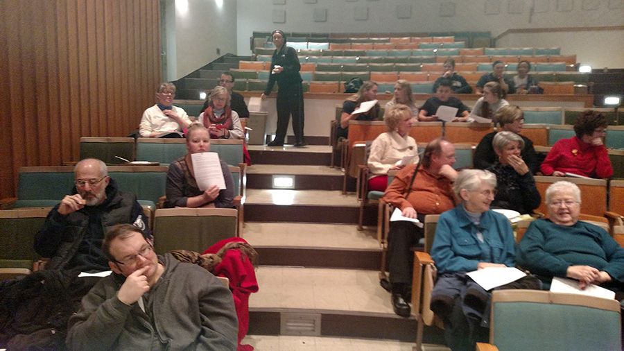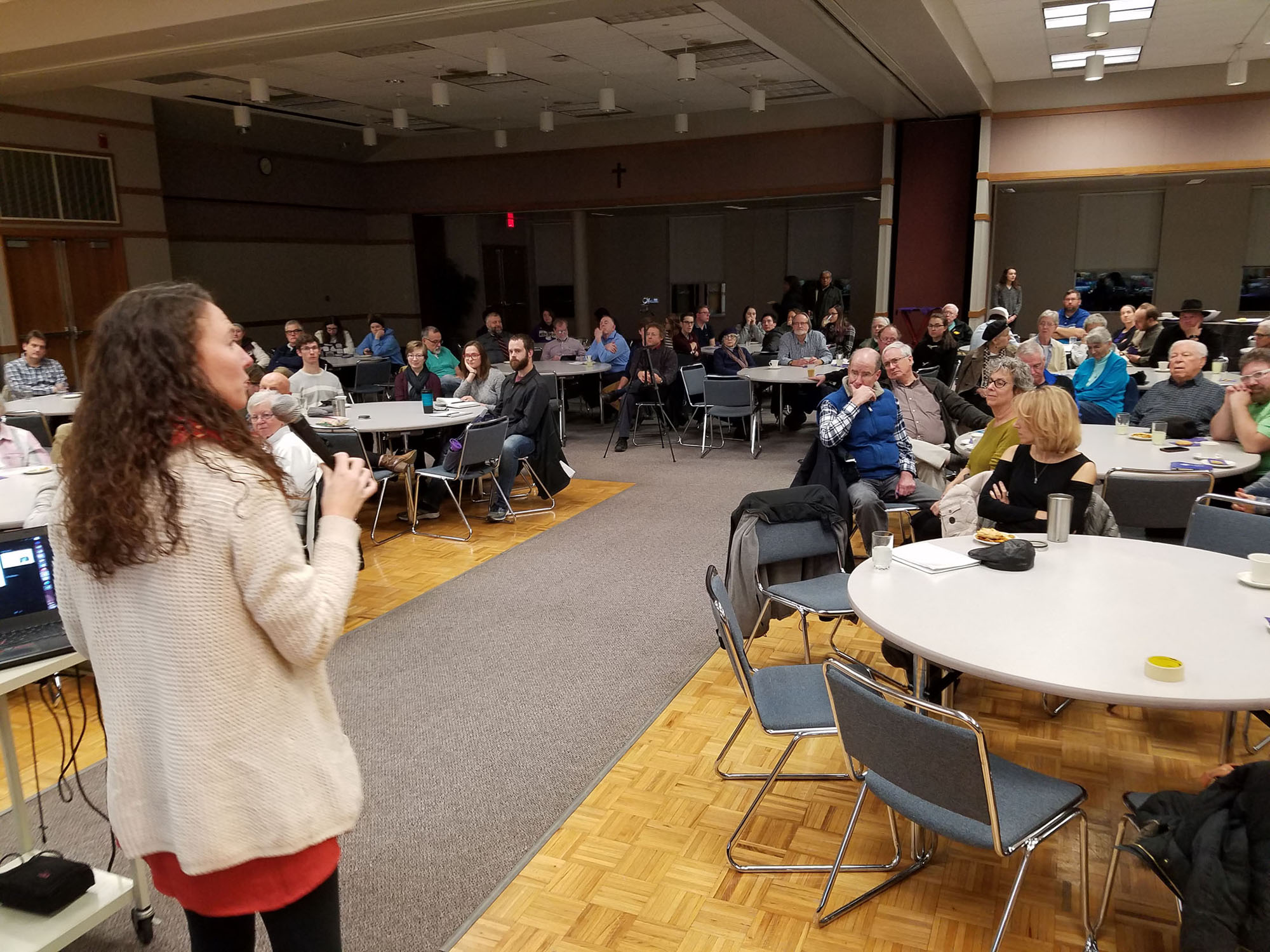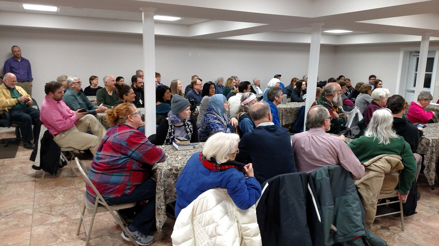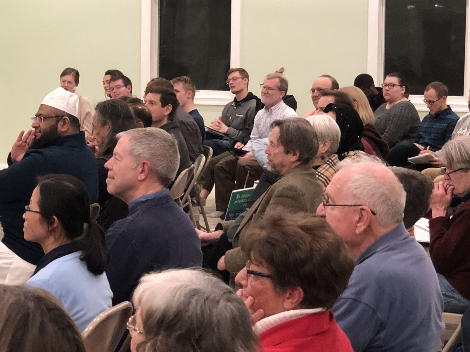 Pictures from our 02-20-20 conversation at the Tri States Islamic Center (the Mosque) in Dubuque. Hosted by Bonnie Sue Lewis, presenters were Kate Scheinman, Anderson Sainci, and Adib Kassas. All the seats were filled and the overflow was on the floor. Special guests this night included Prof Chuck Cohen (whose book we'll use for our Spring book group) from Madison and Rabbi Emeritus Henry Karp, Cantor Gail Karp, and Imam Qasim Siddiqui from Davenport. A lively event with warm hospitality.