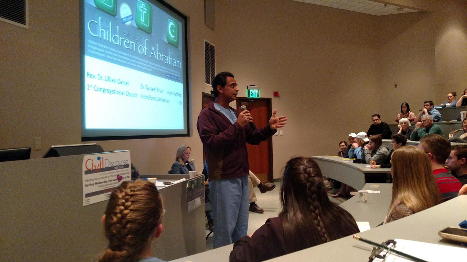 Pictures from our 03-21-19 conversation at the University of Dubuque. Our topic was two-fold: Memorial for the Christchurch, New Zealand Mosque Shootings on Friday, March 15, 2019 and On Death and Dying. Presenters were Mrs. Tania Khan, Dr. Adib Kassas, Dr. Rami al-Tibi, Prof Alan Garfield, Rev Ed Moreano, Mr. Jody Dernin and Prof John Eby. Over 275 persons over-filled the Mosque.