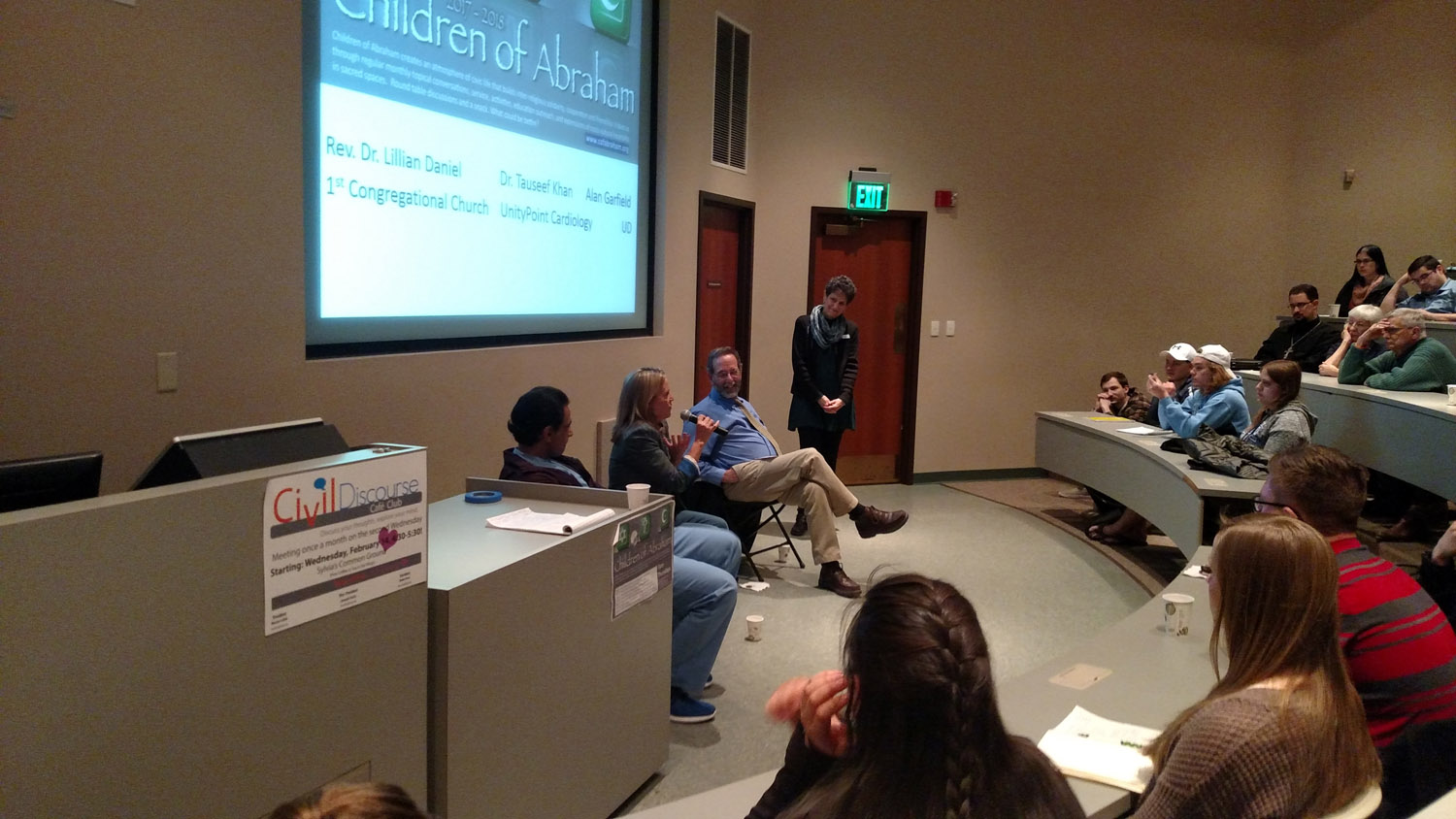Pictures from our 9-19-19 conversation at Loras College. Presenters were Stacia McDermott, Adib Kassas and Alan Garfield. Topic: Heavenly Minded and Earthly Good - How does your faith inform your life? Stories from Catholic, Muslim and Jewish perspectives.